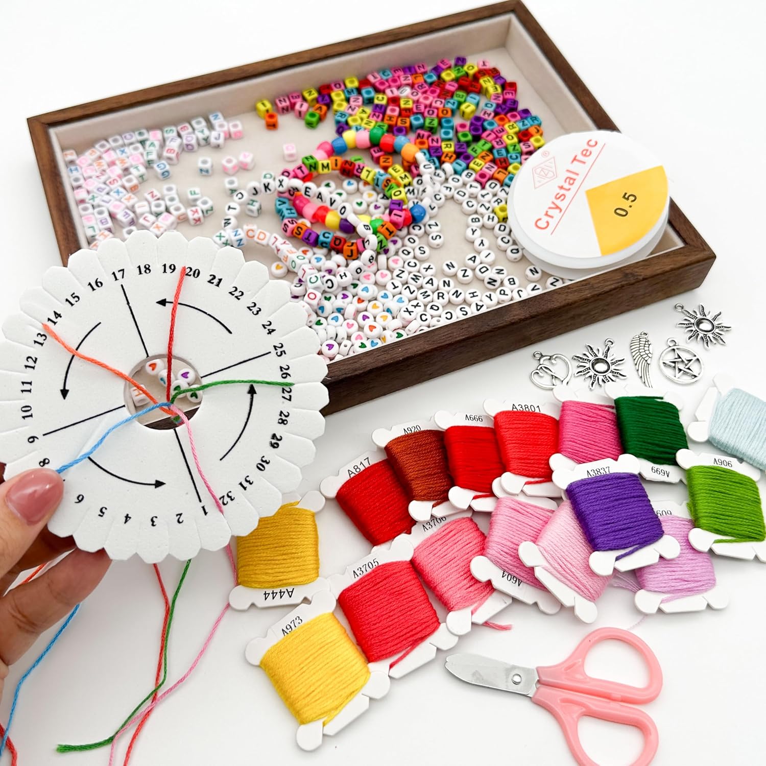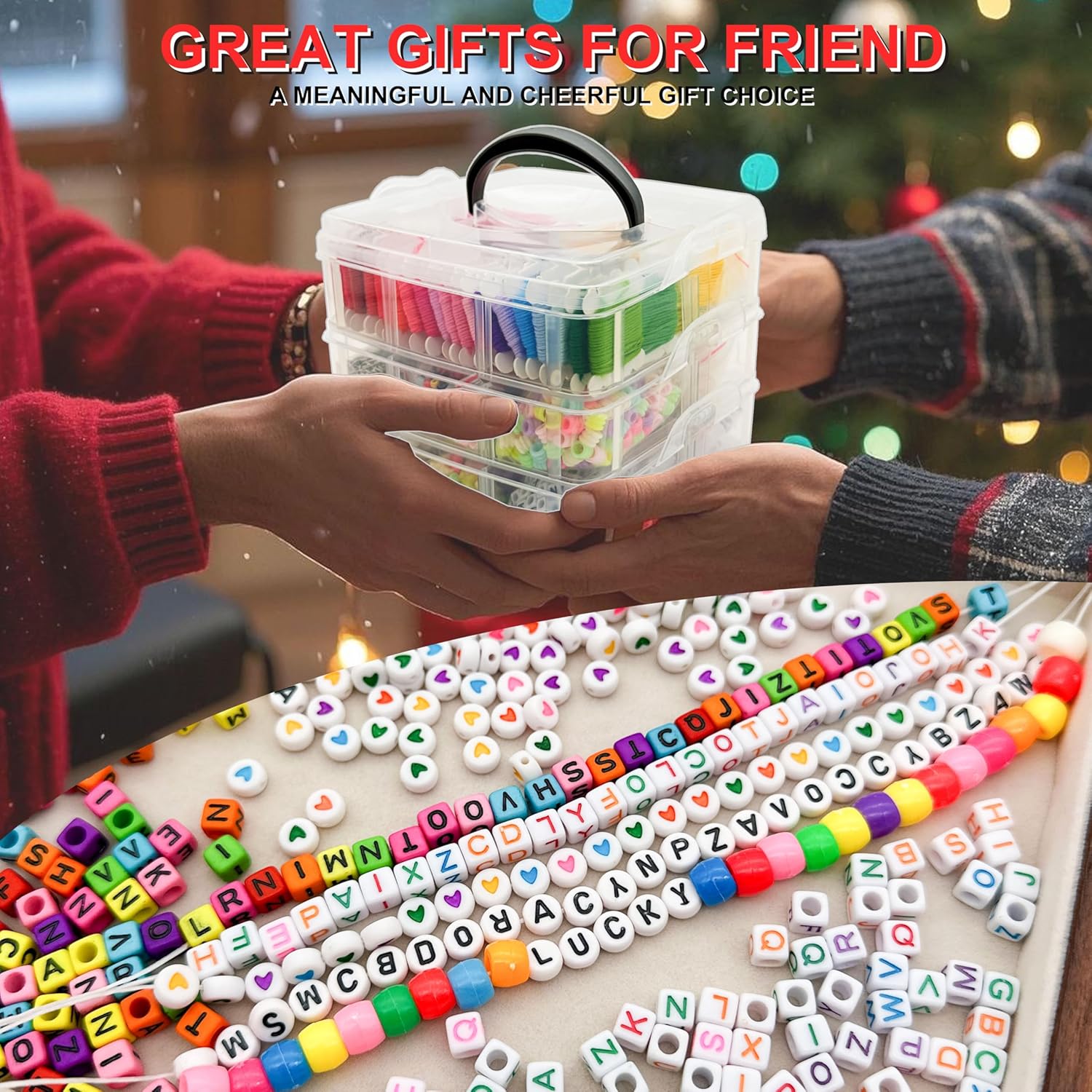 JINNBEY 4655 Pcs Jewelry Making Kits, DIY Bracelet Necklace Portable Three-Layer Spacer Box - Includes 24 Color Cotton Thread & Letter Bead & Tools, The Gift Set for Handicraft Enthusiasts